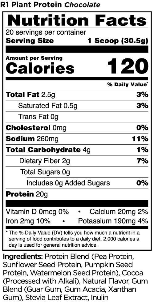 مناسب للشخص النباتيتركيبتنا النباتية ١٠٠٪ توفر ٢٠ غرامًا من البروتين الكامل من مزيج من بروتينات البازلاء وبروتينات البذور المختلفة. يوفر بروتين R1 النباتي تغذية غنية للراغبين في مصادر بروتين بديلة.* |