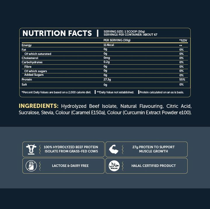 Hydrolyzed Beef Isolate, Natural Flavouring, Citric Acid, Colour (Caramel