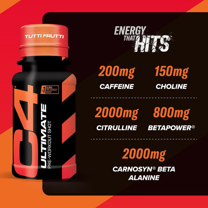 - ULTIMATE PRE-WORKOUT SHOTS: Unlock your ultimate experience. Power your fitness goals with C4 Ultimate Pre-Workout Shots, our most advanced and comprehensive shot with clinically tested, patented ingredients to support peak performance.