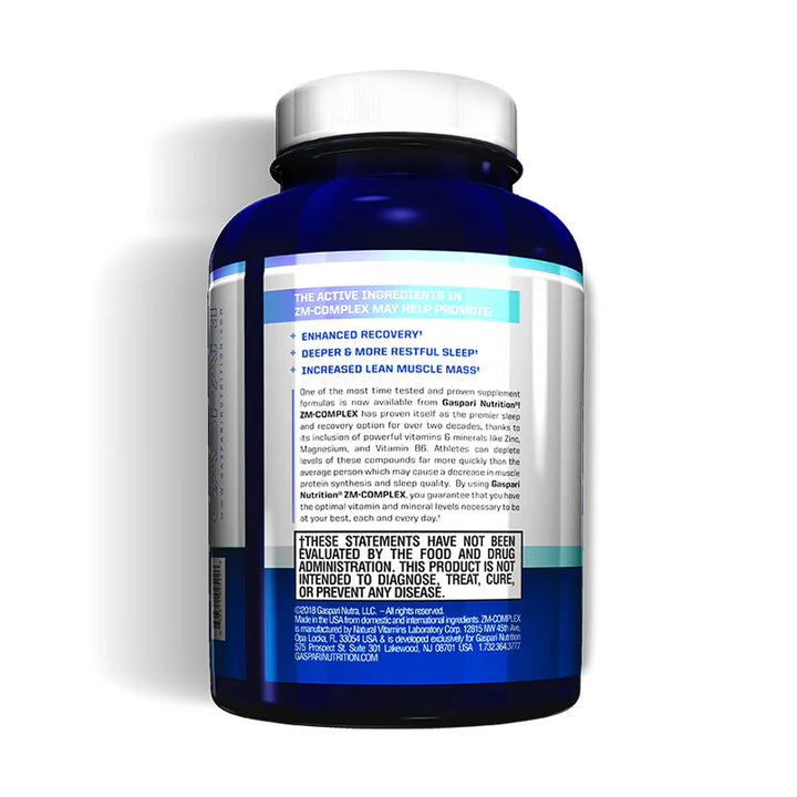 One of the most time-tested and proven supplement formulas is now available from Gaspari Nutrition! ZM-COMPLEX has proven itself as the premier sleep and recovery option for over two decades, thanks to its inclusion of powerful vitamins & minerals like Zinc, Magnesium, and Vitamin B6. Athletes can deplete levels of these compounds far more quickly than the average person which may cause a decrease in muscle protein synthesis and sleep quality. By using Gaspari Nutrition ZM-COMPLEX, you guarantee that you have the optimal vitamin and mineral levels necessary to be at your best, each and every day.†