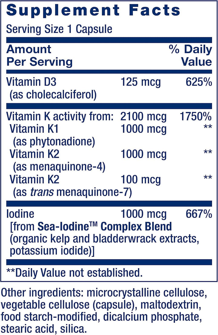 Maintaining healthy vitamin D levels helps support cognitive health, promotes bone health, encourages healthy immune function and more. Vitamin K helps maintain your body’s calcium balance, which affects everything from cardiovascular health to bone density. Iodine is essential for the production of thyroid hormones.
